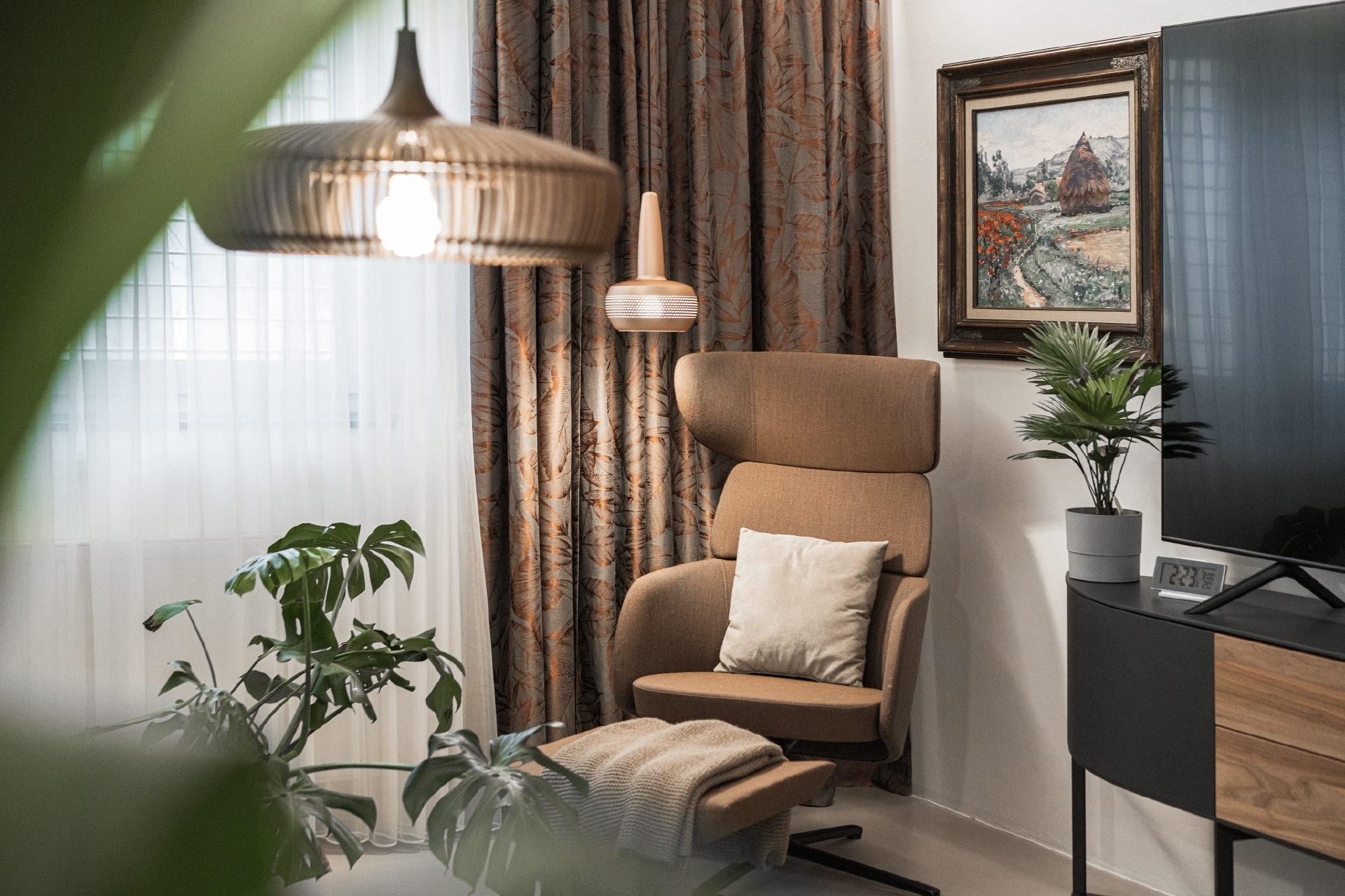 Ve svém studiu mám vzorkovnu látek a tapet, abych mohla zákazníka provést od hrubé stavby až ke konečnému dolaďování jednotlivých prostorů.