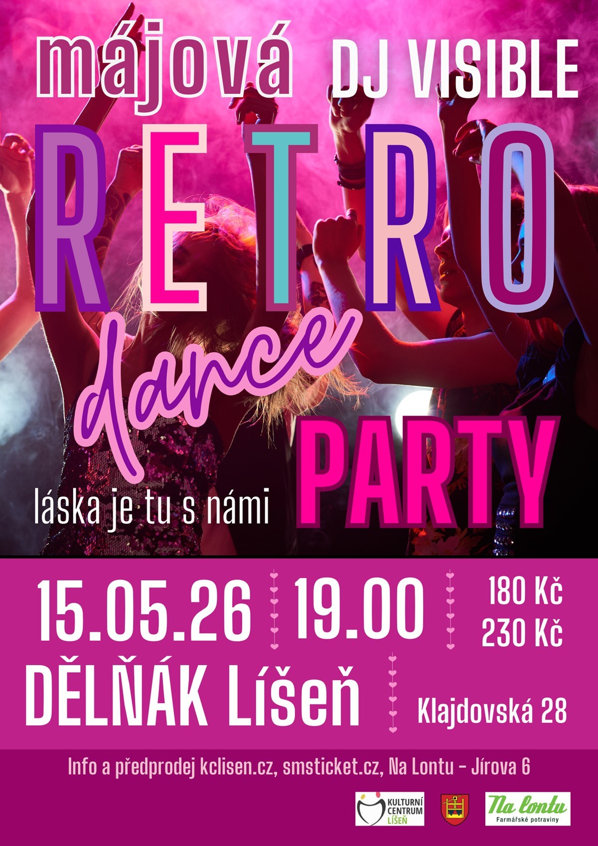 Je máj, lásky čas a taky skvělý čas vyrazit na naší májovou retro dance party! Celý večer vám bude hrát stylový DJ VISIBLE, který vám bude pouštět nejen skvělou muziku, ale i bubliny, disko kouli, světýlka a tekoucí mlhu! Chybět nebude ani fotokoutek plný retro rekvizit, dobrá nálada a možná dojde i na lásku, když budete chtít.