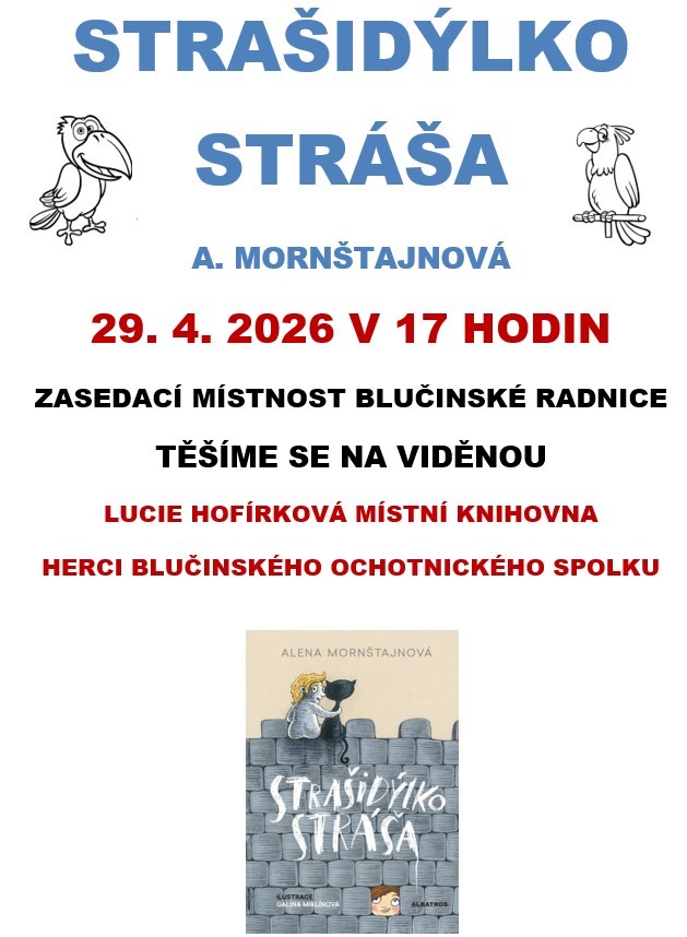 Místní knihovna a herci Blučinského ochotnického spolu zvou děti i dospělé na hravé čtení z knihy Aleny Mornštajnové Strašidýlko Stráša.