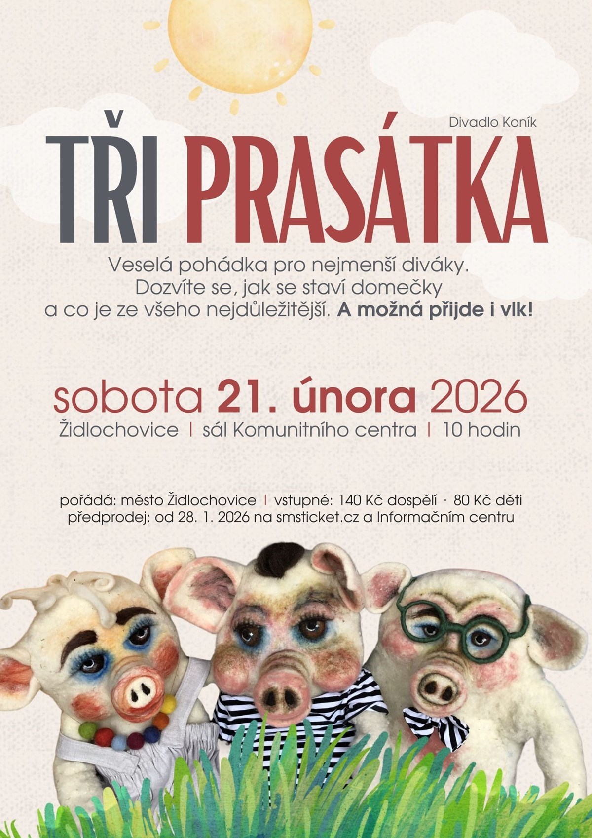 Divadlo KoníkVeselá pohádka pro nejmenší diváky. Dozvíte se, jak se staví domečky a co je ze všeho nejdůležitější.
