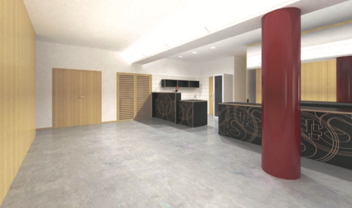 Největším oříškem pro nás byl a je bar ve vestibulu a kuchyně. Prostor byl dočasně celý předělán s ohledem na požadavky školní jídelny. Pro nás to bylo impulzem se zamyslet, jak ho následně zrenovovat. Oslovili jsme architekta p. Juru a výsledkem je návrh nového uspořádání baru, který můžete vidět na vizualizacích. Můžete si zde mimo jiné povšimnout, že budememěnit umístění dveří z tělocvičného sálu do vestibulu nebo nové skladovací místnosti mezi barem a kuchyní. Současně jsme poptali i vybavení kuchyně i baru gastronomickými zařízeními.