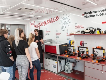 „V pojízdné dílně FabLab Experience si můžeš na vlastní kůži vyzkoušet digitální řemeslo. Stroje, které s sebou vezeme, ti umožní například 3D tisk z plastů, laserové řezání dřeva, CNC obrábění nebo třeba polepy či potisky na triko. Díky tomu můžeš svým nápadům a projektům dát reálnou a hmatatelnou podobu. Kromě toho vezeme i robotické rameno, které čeká, jaké pohyby ho naučíš a elektronový mikroskop, co zobrazí i ten nejmenší detail,“ říká manažer FabLab Experience Daniel Šín.