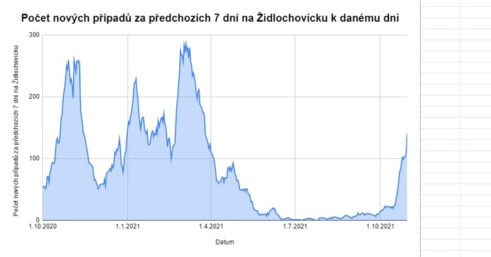 Na Židlochovicku začíná strmě růst počet nových případů onemocnění Covid-19 za posledních 7 dní. Ještě v polovině října bylo v obcích na Židlochovicku dohromady zaznamenáno 19 nových případů za poslední týden, k 30. říjnu už to bylo 141 nových případů za předchozích 7 dní. Situace v regionu tak začíná připomínat počátek loňské podzimní nebo letošní zimní vlny.