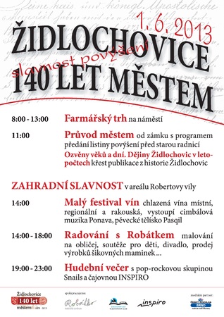 Letošní rok patří v Židlochovicích akcím, které jsou spojené s oslavami 140 let od povýšení Židlochovic na město. Oslavy vyvrcholí v sobotu 1. června, naplánován je celodenní program.