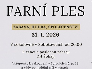 Zimní sezóna plesů a veselic je v plném proudu a Syrovice nezůstávají pozadu. Syrovská mládež zve srdečně všechny občany, sousedy i přátele dobré zábavy na tradiční Farní ples, který se uskuteční v sobotu 31. ledna 2026.