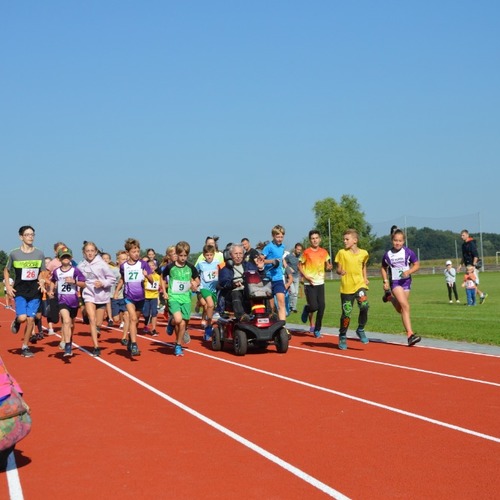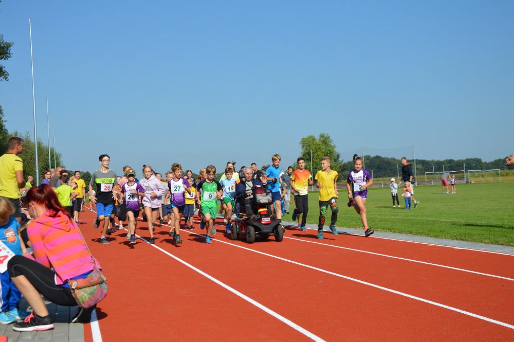 Po oficiálním předání dráhy do užívání přestřižením pásky pokračoval program sportovní částí - proběhlo další kolo atletické ligy žactva „Zajícova liga“. Startovaly děti od atletických přípravek až po starší žactvo. Všechny běhy uspořádali pořadatelé na nové dráze. Ti nejmenší běželi trať dlouhou 200 metrů, nejstarší běžci se utkali na trati dlouhé 800 metrů. Každý vítěz se stal ve své kategorii novým rekordmanem okruhu.