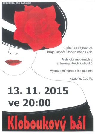 Kloboukový bál se koná v pátek 13. 11. od 20:00 hodin v sále OÚ Rajhradice.
